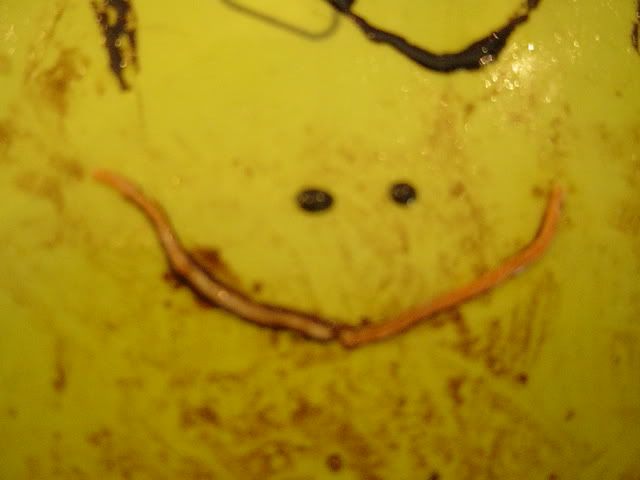 I drew the smiley with soya sauce & baby used the slied carrots to go over it. Hahah [: