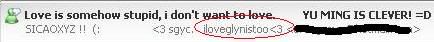 Liyana; ME MIISH YOU WORS. :D I KNOE EU MISH ME TOOS. I'm seeing on Saturday. -runs around Li (: