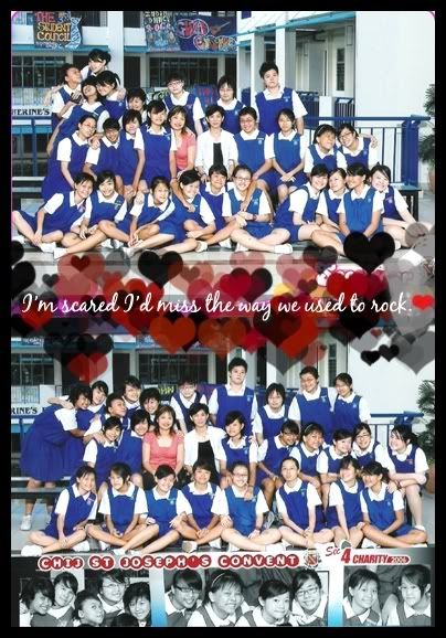 someone-in-the-class-got-bullied, we'll go all out for that one individual. Tricia would go, Xw will follow, Yj would be asked along. The past two years with them was great, really. Though we have nothing much to look back on, but times we've spent together are long enough for us all to keep it as memories. Sec3 was disasteous, but fun. Miss Sek made that year so worthy, didn't she? :) I kinda miss her now. I miss her lessons, her