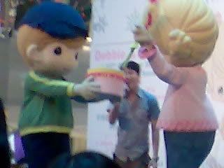 15th! Zel & I met Gran, Cherilyn & mom at Sakae. Had lunch together :) Went back after that. Sat in the study, & slacked. I read my book as well, haha. I'm so stuck on it la k. So after that we watched ch55's drama. Damn funny, that Ah Wang show :) Watched the entertainment show, then the 5.30pm show. Went for din din @ Toa Payoh! My fav. Then sent Gran & Cherilyn back to Aunt's place. Yesterday! Met Cherilyn @ Compass, went to Orchard & walked to Taka. I saw two guys with the FREE HUGS sign!! :D :D Bought mummy's fav donuts (we bought the whole tray of it haha!) & ate Auntie Anne's again! :D Took a train back to DG & walked around. Saw Precious Moment's performance thingy. Very cute. Cherilyn thought they were smalllllll. Hahaha! Like drawf-size! Bought some stuff for Jermaine & went back to Aunt's place. Was supposed to celebrate Maine's birthday 'cos Aunt got no time on her birthday, no leave. Went to Toa Payoh for dinner again! Yummy :)
